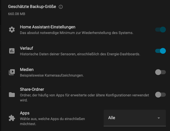 Dann wollte ich ein neues Backup machen und sehe die Differenz von 660 MB zu aktuell 24 MB
