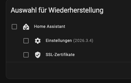 Ein Restore vom Automatic backup 2026.3.3 471.06 MB gestern will ich vorerst nicht machen.