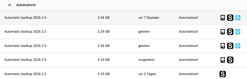 Ich werde mal abwarten wie das Backup weitergeht, Home Assistant ist gesichert ohne die riesige InfluxDB-Datenbank. Und ich das Home Assistant besser kennenlerne.