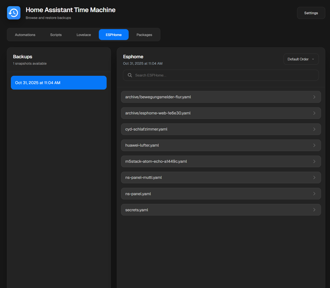 Im Newsletter von Paulus Schoutsen bin ich auf die Time Machine für Home Assistant gestoßen.