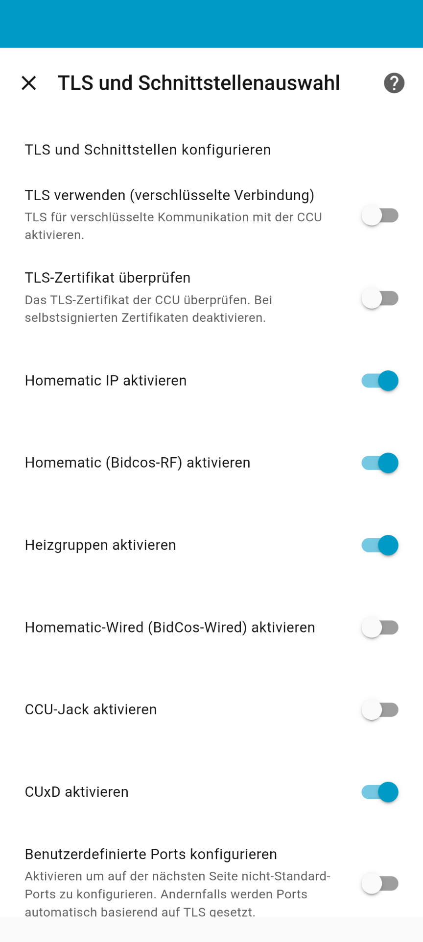 Die Ports auf meiner CCU3 sind offen, dies hätte nach meiner Recherche ein Problem sein können.