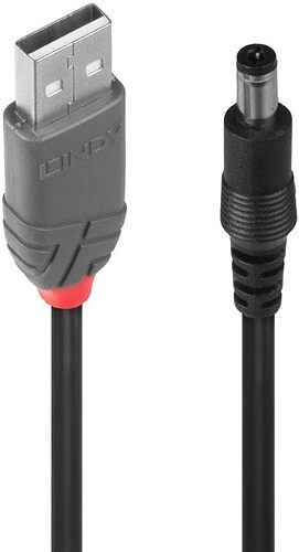 Als Zuleitung habe ich ein Adapter-Kabel, USB >>> Hohlstecker 5,5 x 2.1 mm genommen.
