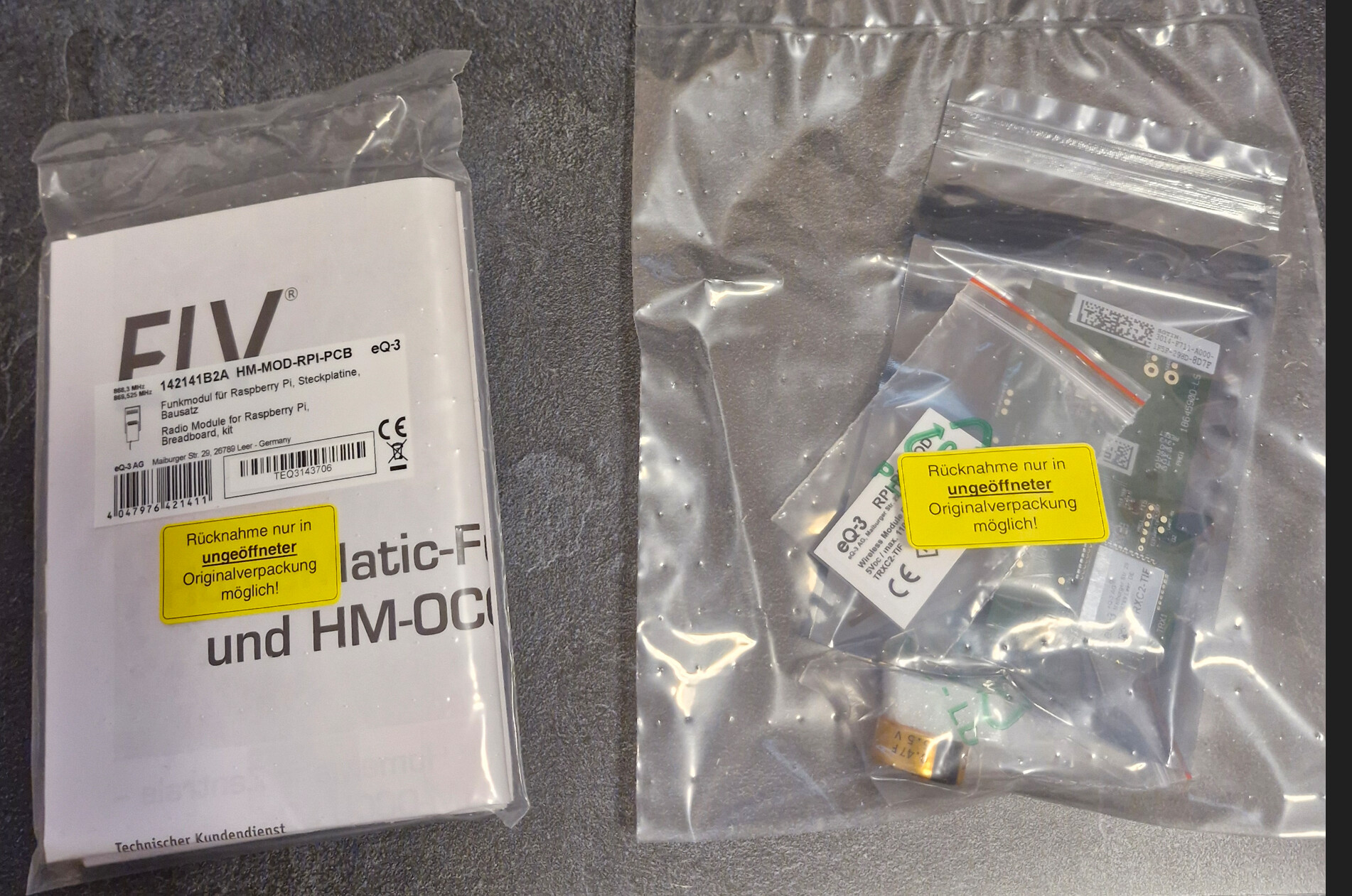 Da ich ungeduldig und unsicher war, welches Funkmodul das richtige ist, habe ich, wie oben bereits erwĂ€hnt, das groĂe und das kleine Modul bestellt, um zu testen, welches ich behalten werde.