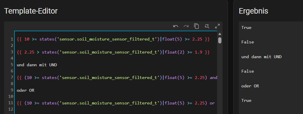 {{ (10 >= states('sensor.soil_moisture_sensor_filtered_t')|float(5) >= 2.25) or (2.25 > states('sensor.soil_moisture_sensor_filtered_t')|float(2) >= 1.9 ) }}