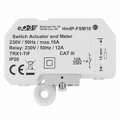 Hier noch ein normaler HMIP Schaltaktor der über Funk läuft, aber mit fester Verdrahtung, also ohne Batterie. Den könnte man direkt hinter den jeweiligen Schalter bauen, so habe ich auch im Einsatz, aber noch mit alten HM Schaltaktoren.