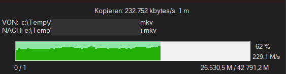 Kopieren einer groĂen Datei von meinem Laptop (C) zum HP-T640 (E) (USB 2,5GB LAN)