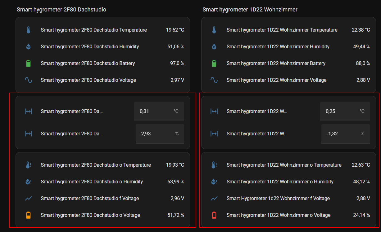 - Offset von Werten in den GerĂ€ten wird nicht in HA berĂŒcksichtig! => es kommen immer die roh Daten