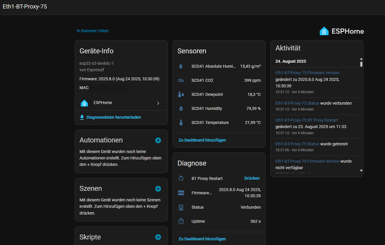 und jetzt habe ich also einen BT-Proxy mit CO2 Sensor angebunden per LAN