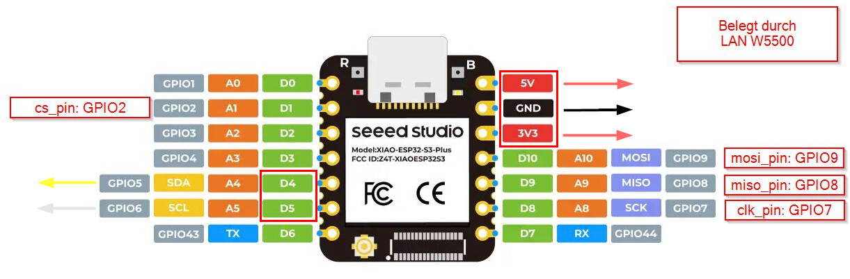Jetzt kam der XIAO W5500 Ethernet Adapter als Bluetooth Proxy (mit jetzt installierte SCD41 Sensor)