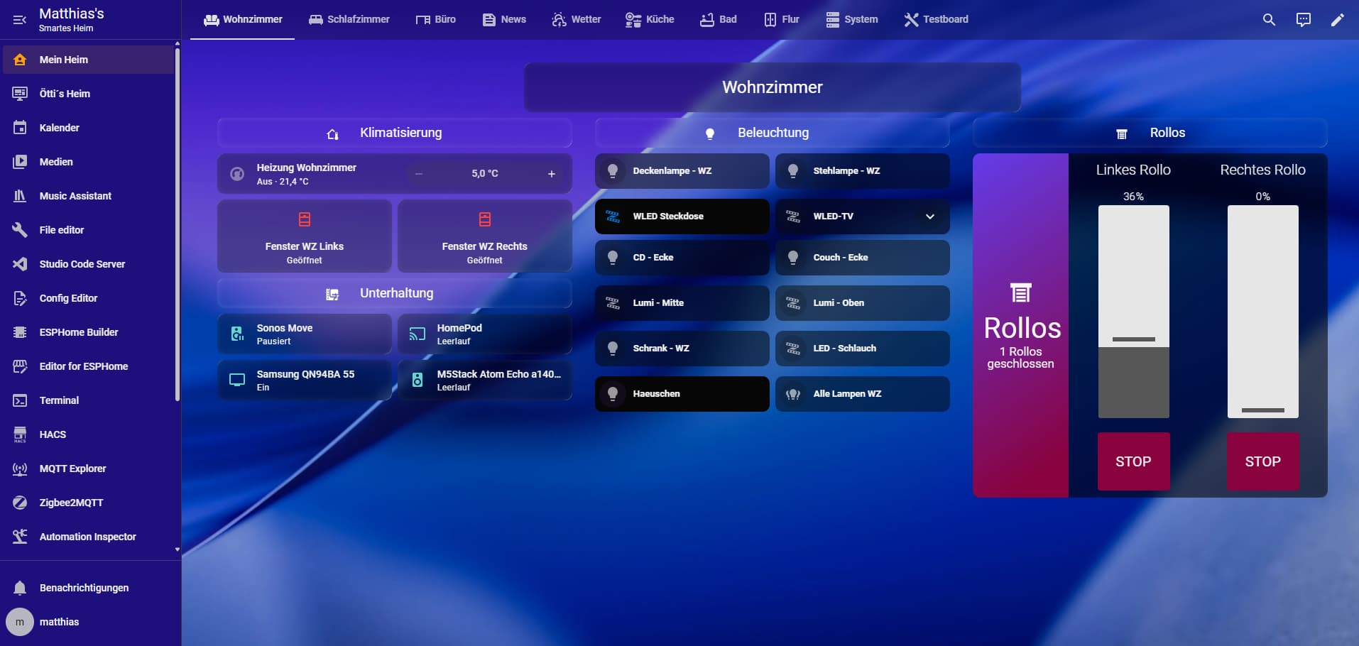 Dashboard fĂŒr das Schlafzimmer ist dann auch fertig