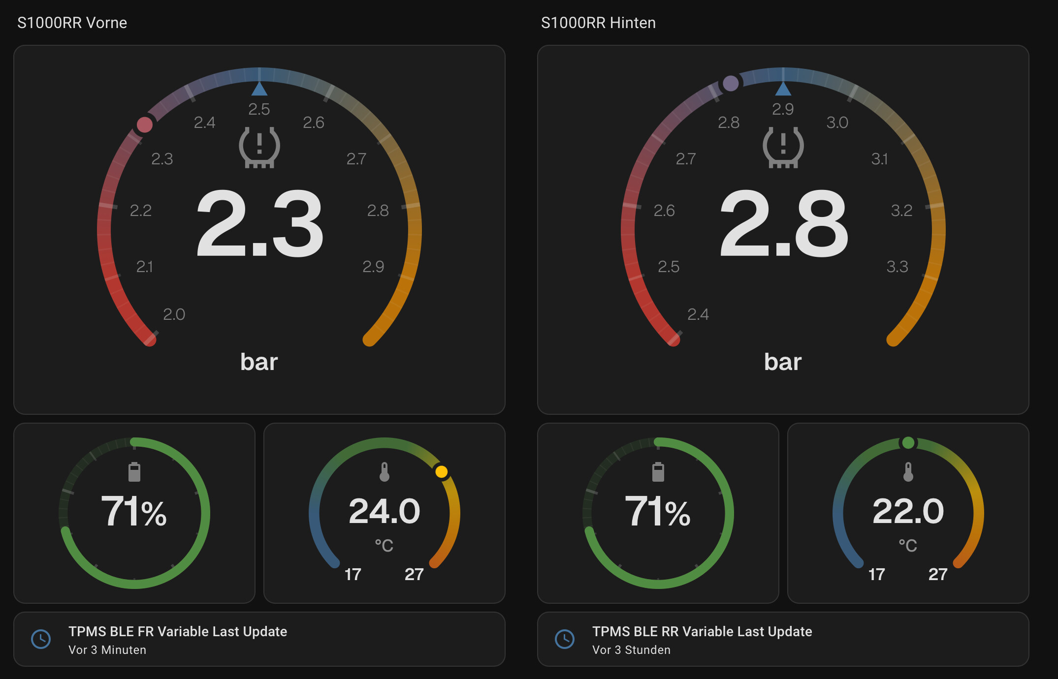 Sowie meine restlichen TPMS jetzt doch an die MotorrĂ€der gebaut, natĂŒrlich mit Dashboard Anpassung