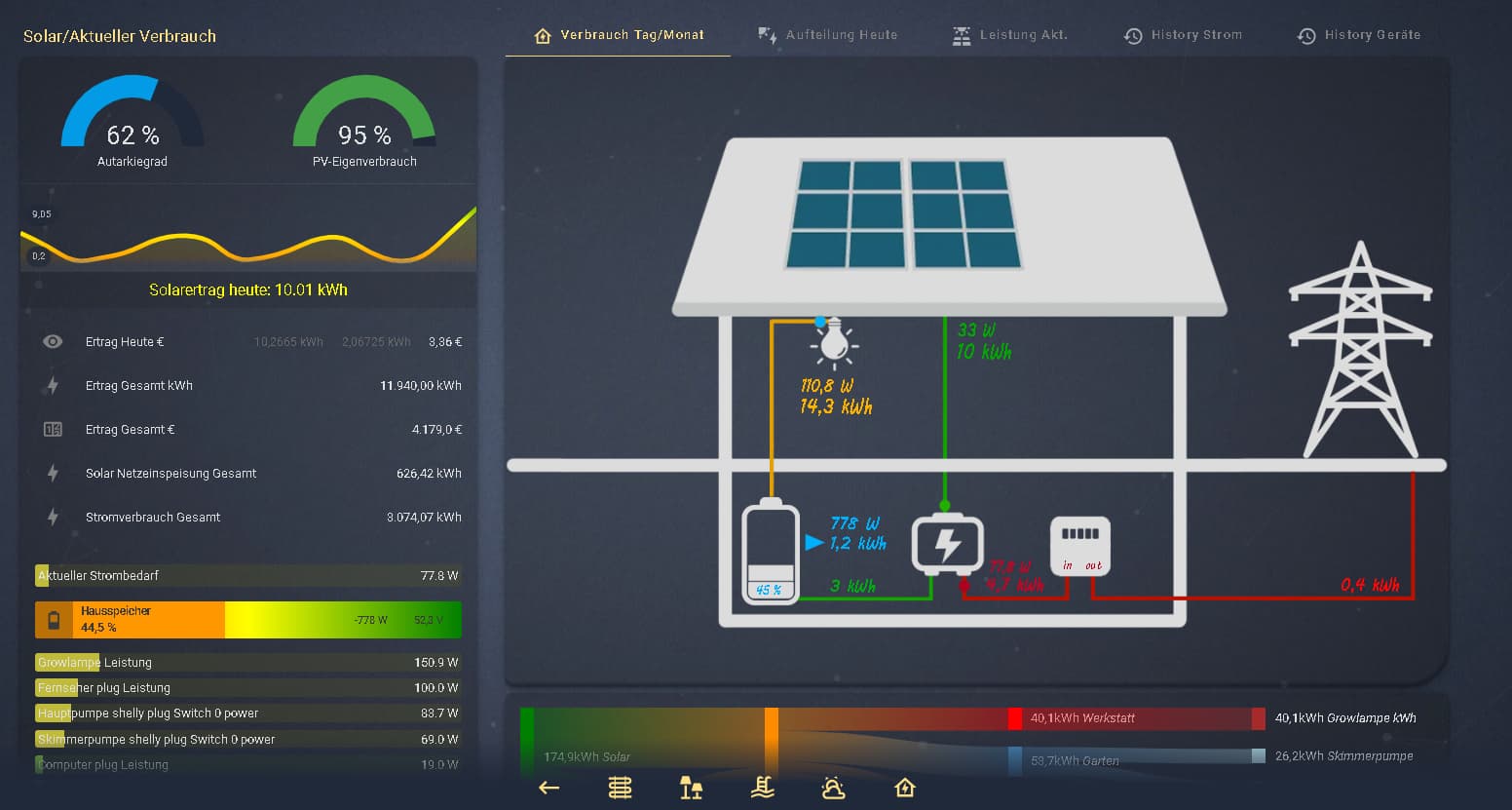 Aktuell bin ich dabei die ganzen Sensoren im Dashboard anzupassen, im FileExplorer muss ich auch noch ein paar selbst geschriebene Sensoren umschreiben, bin aber schon fast durch und dann freue mich über die neue Autarkie. Das macht mich wirklich glücklich.