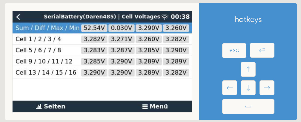 Hi, ich habe das ganze Wochenende damit verbraucht, meine Batterie in das Venus OS zu bekommen und hatte daher auch kein Zeit bei uns in der Community zu helfen. Geplant war eigentlich die Verbindung über CAN. Aber anscheinend können die China-Akkus das nicht. Also habe ich sehr viel Zeit mit Lesen und testen verbracht und gestern Nacht um 0:30 Uhr war es dann endlich soweit. Über RS485, also serial Verbindung klappt das Auslesen nun endlich auch über das VenusOS. Ich bin so glücklich, es endlich geschafft zu haben. Habe aber dazu auch sehr gute Denkanstöße im Discord von Solar Stromer erhalten. Mafe hatte mich dahin verwiesen, lieben Dank dafür