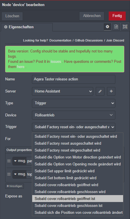 Mit dem Switch-Manager oder den MQTT topics ist das bestimmt auch ganz gut zu machen, aber ich arbeite lieber mit Node-RED und da ist der âdevice-nodeâ fĂŒr mich eine echte Bereicherung.