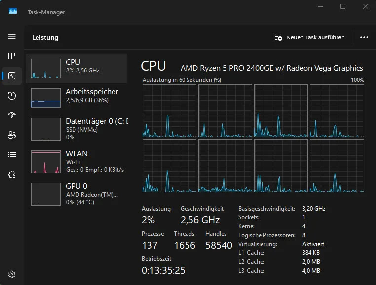 Am Wochenende habe ich mein Thinkcentre 720 wieder in Betrieb genommen. Der lĂ€uft mit einem Ryzen 5 2400G und war daher nicht kompatibel zu win11, habe dann den Trick mit Umschreibung der Registry vorgenommen und konnte es im Anschluss installieren. FĂŒr die alltĂ€glichen Arbeiten reicht der vollkommen aus und spart gegenĂŒber dem Hauptrechner die HĂ€lfte ein, aktuell so um die 40-50w und vorher immer ĂŒber 150w, bei Grafik auch mal gerne 300w und mehr.