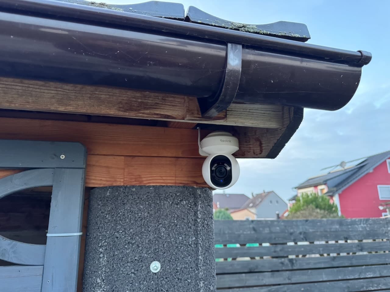 Entsprechend (noch) keine Bilder vom Setup, ich habe die Kamera selbst tatsĂ€chlich noch nie im Tageslicht gesehen LĂ€uft aber super. Habe sie an der Ecke der einen GartenhĂŒtte aufgebaut, die wir nicht abreiĂen werden, schön geschĂŒtzt unter der Dachkante.