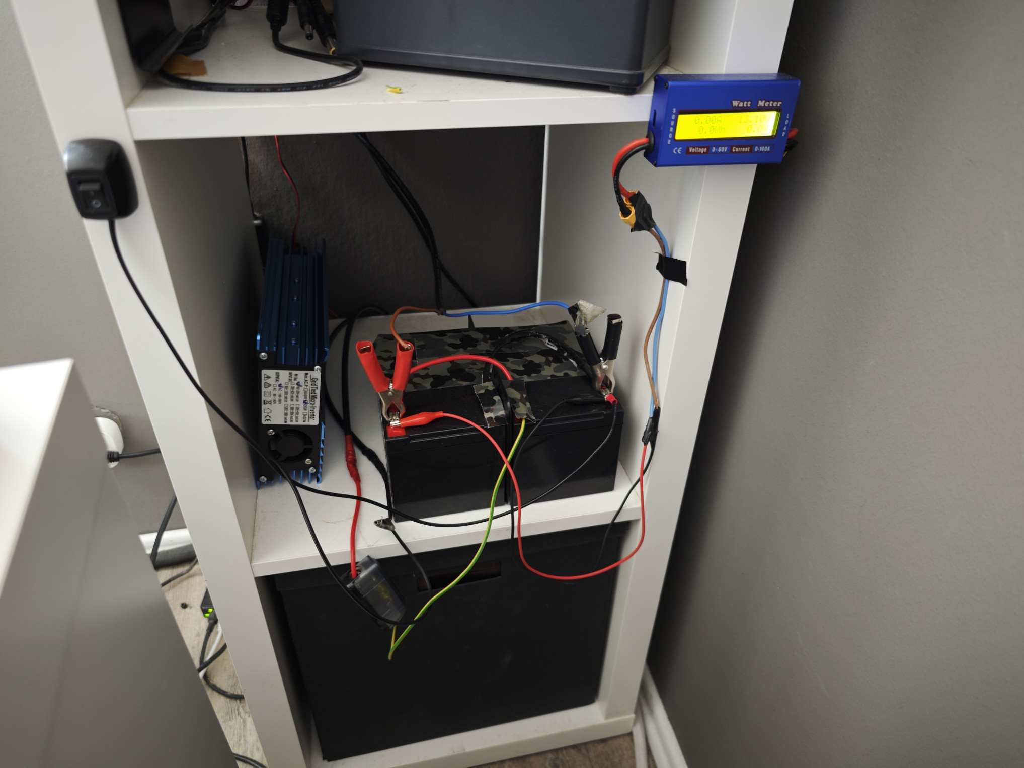 Die Energie wurde dann per âBlauenâ China Inverter ins Hausnetz gebracht, das ist auch mit ein Grund fĂŒr die Demontage, das teil hat in DE keine Zulassung und die Akkus der PWS sowie die âHilfs-Akkusâ sind auf 50% runter.