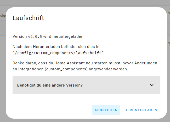 Zu den alten Versionen: Du kannst die 1.0.4 oder 1.0.5 natĂŒrlich weiterhin testen, aber diese musst du manuell von GitHub herunterladen und in deinen custom_components Ordner kopieren. Ich empfehle dir aber zuerst den Test mit der neuen v2.0.5, da der 60-Sekunden-Timeout dein Problem wahrscheinlich direkt löst.