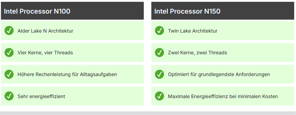 Welcher Prozessor ist hier besser (N100, N150 oder i 3/5/7)?