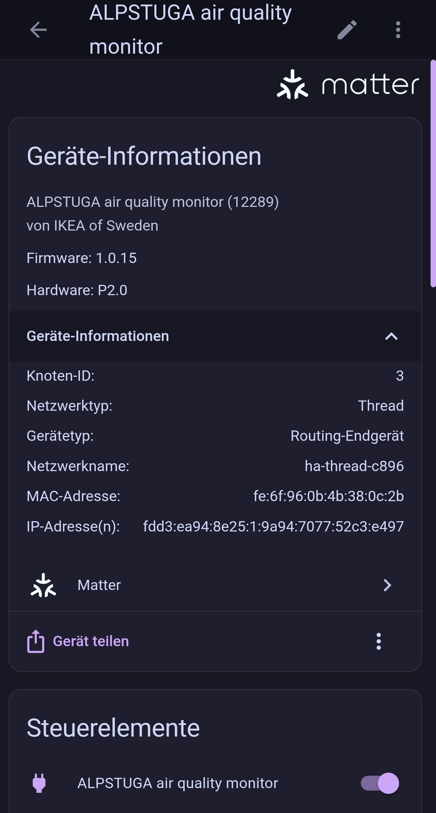 Für mich war vor allem interessant ob diese aussage wohl auch zutreffend ist, und das Ding sich wirklich ohne extra Hardware über Thread im HA integrieren lässt. Aus diesem Grund auch die suche nach der Visualisierung des Netzwerkes.