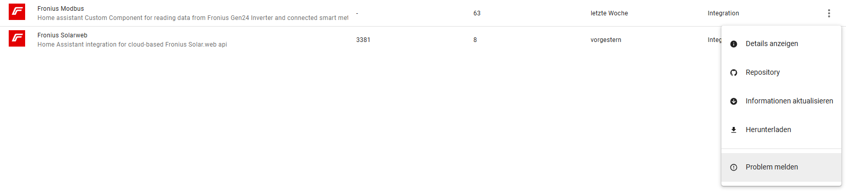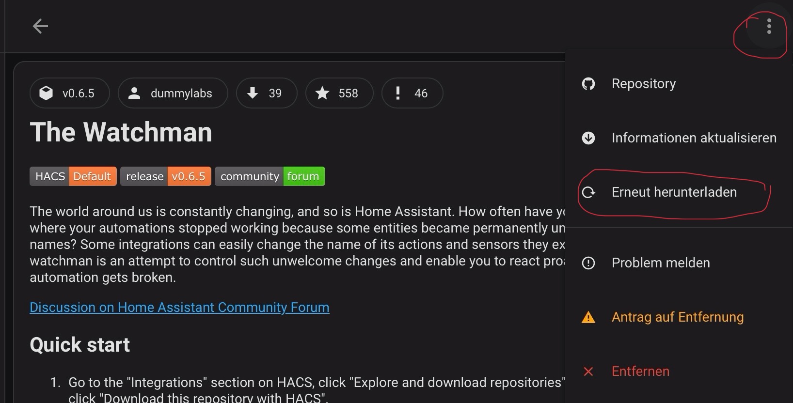 wie kann ich einen Integration welche ich aus dem HACS installiert habe updaten?