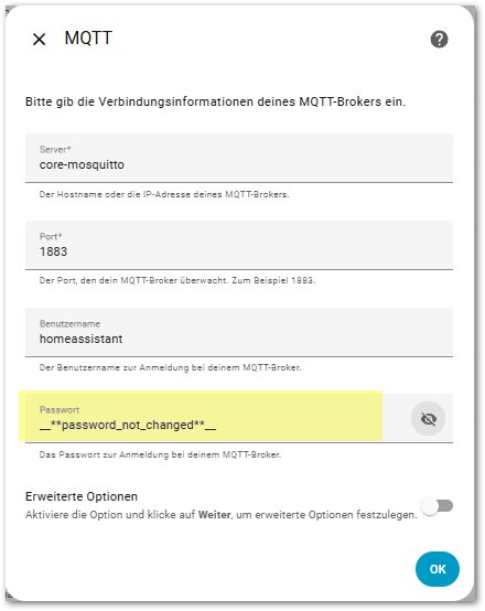 Ich muss bei der MQTT Einrichtung nicht aufgepasst haben, oder kam vielleicht das Standard Passwort gar nicht zum Vorschein, jedenfalls, ich kenne ihn leider nicht.