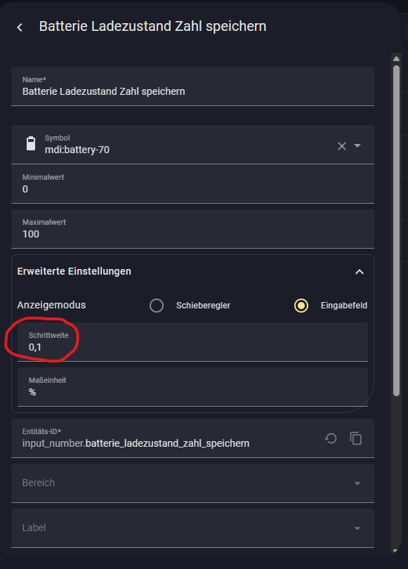 Bei deinen Zahlen-Helfern kannst du die Schrittweise unter erweiterte Einstellungen einstellen, dann sollten auch die Zahlen in den Ausgaben angepasst.