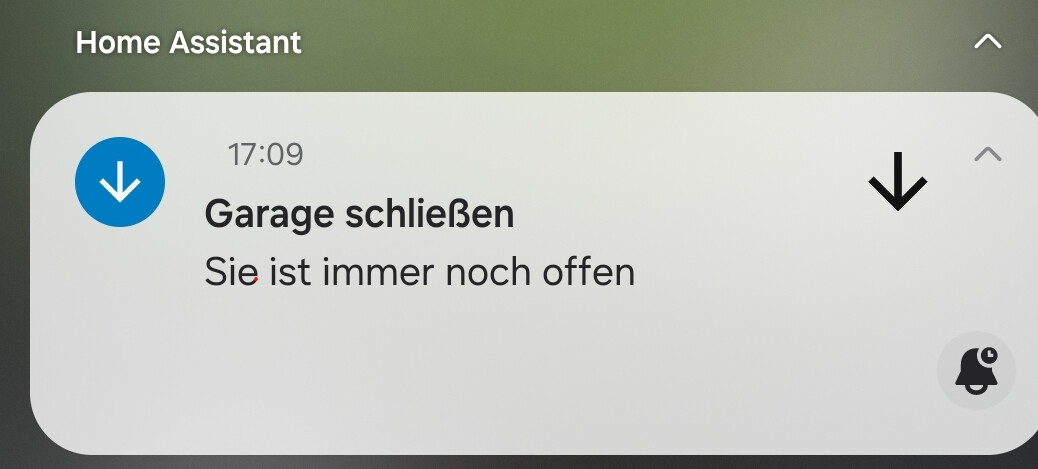 message: Garage ist noch offen!