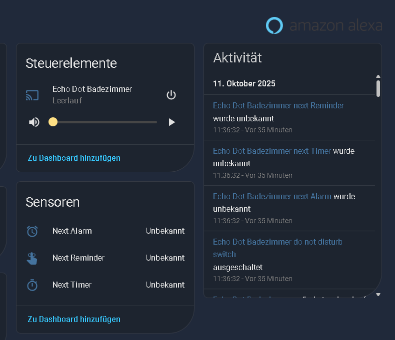 Auf meinem Testsystem war mit dem Update auf 2025.10.1 schluĂ mit AlexaDevices auf AMP habe ich da nicht geachtet.