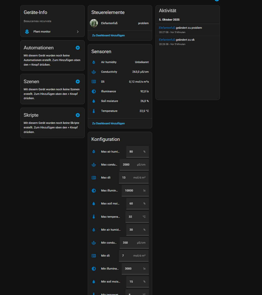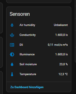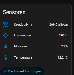 aber ich habe über Hacs die integration Plant Monitor installiert und lasse sie mir darüber im HA anzeigen.