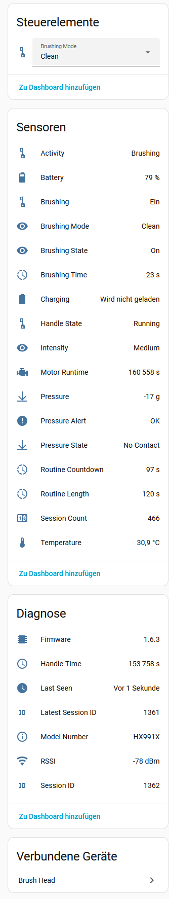 Super vielen Dank für deine Mühe. Nun klappt es auch bei meiner Zahnbürste. Ich sehe so viele Sensoren wie noch nie !