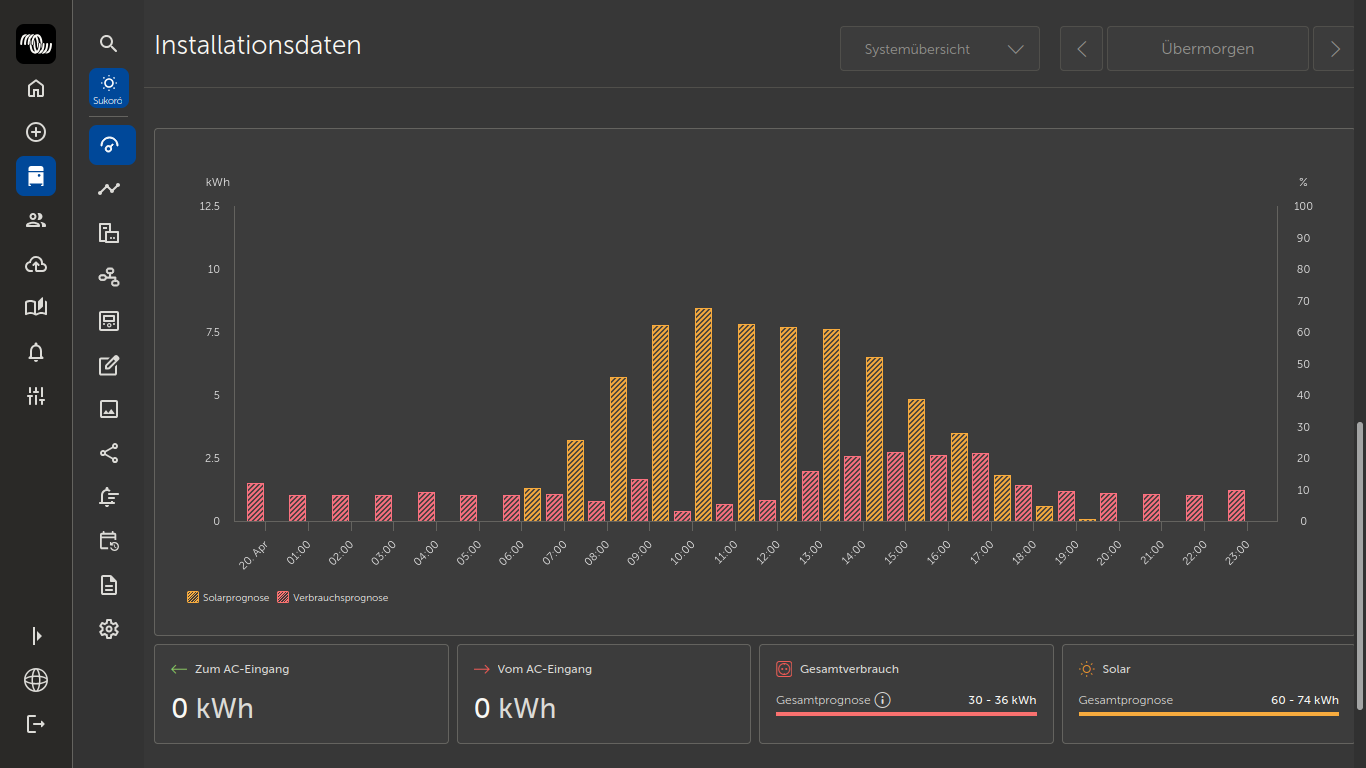 Meist du so was wo man die Prognose für den nächsten Tage sieht was PV Ertrag und Hausverbrauch ist?