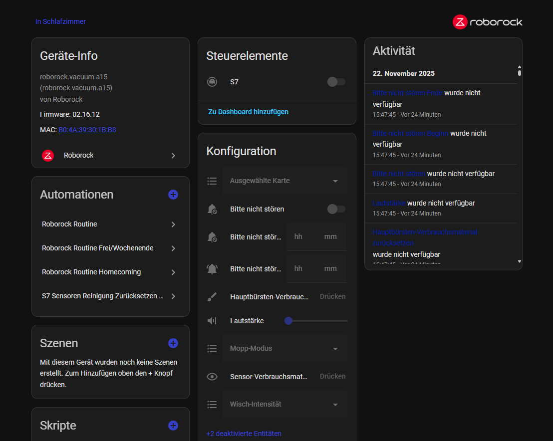 ich habe seit mehreren Wochen ein Problem mit der Roborock Integration.