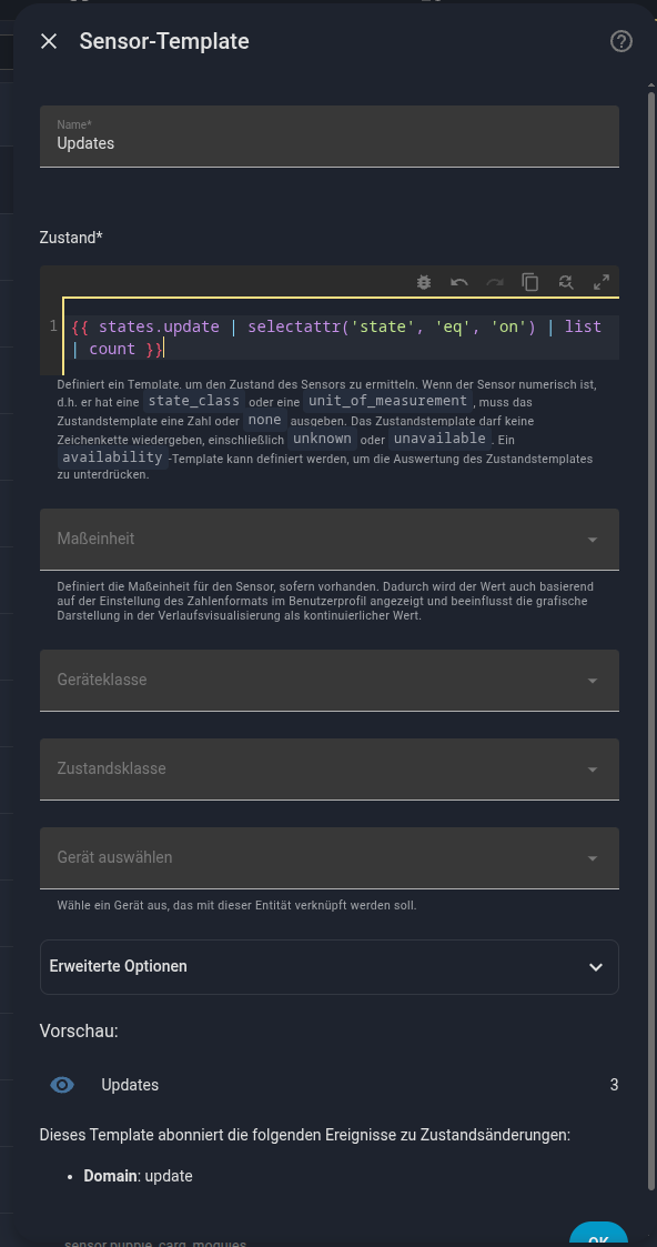 EDIT: Ist mir gerade noch eingefallen, dass man die Templates auch direkt in einer Automatisierung anlegen könnte und so nicht zwigend die Helfer benötigt. Würde es aber über Template Helfer machen, weil du dann mit den Werten auch an anderer Stelle arbeiten kannst.