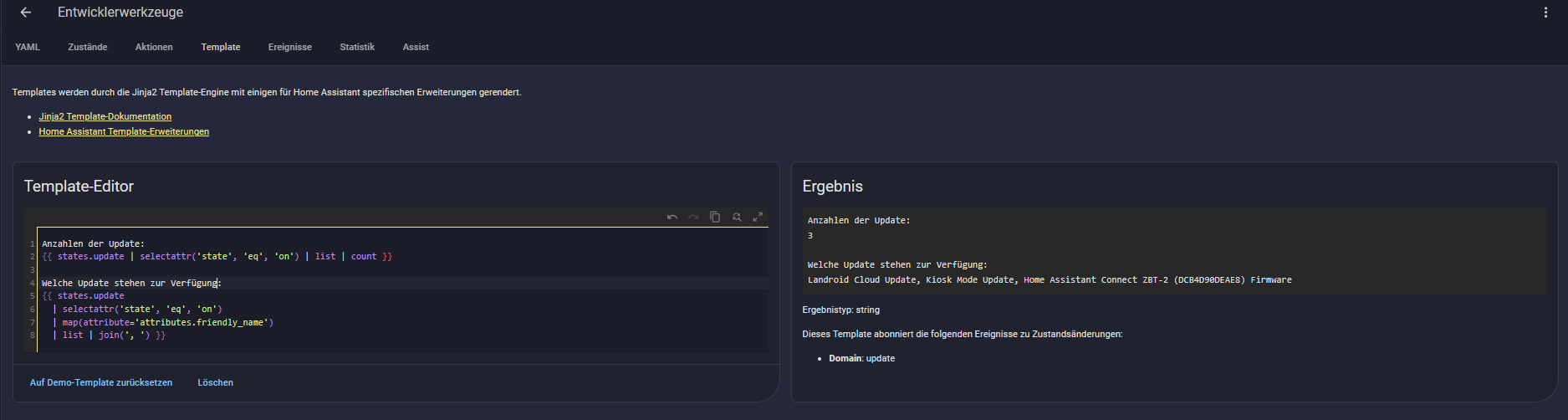 Ah ok, dann musst du nur die Domain update in HA abfragen, am besten mit einem Template-Helfer. Habe mal bei mir im Terminal getestet. Diesen Teil muss du dann jeweils im Template-Helfer hinterlegen.