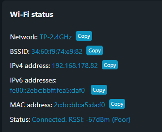 Dann haben wir wohl den Übeltäter. -67dBm sind schon ziemlich schlecht und er Shelly schickt ja sehr regelmäßig seine Werte, da kann es schon zu Problemen kommen. Kannst du den Empfang verbessern, Repeater anders positionieren? Wie bekommt der Repeater sein Signal über LAN oder einfach nur WLAN?