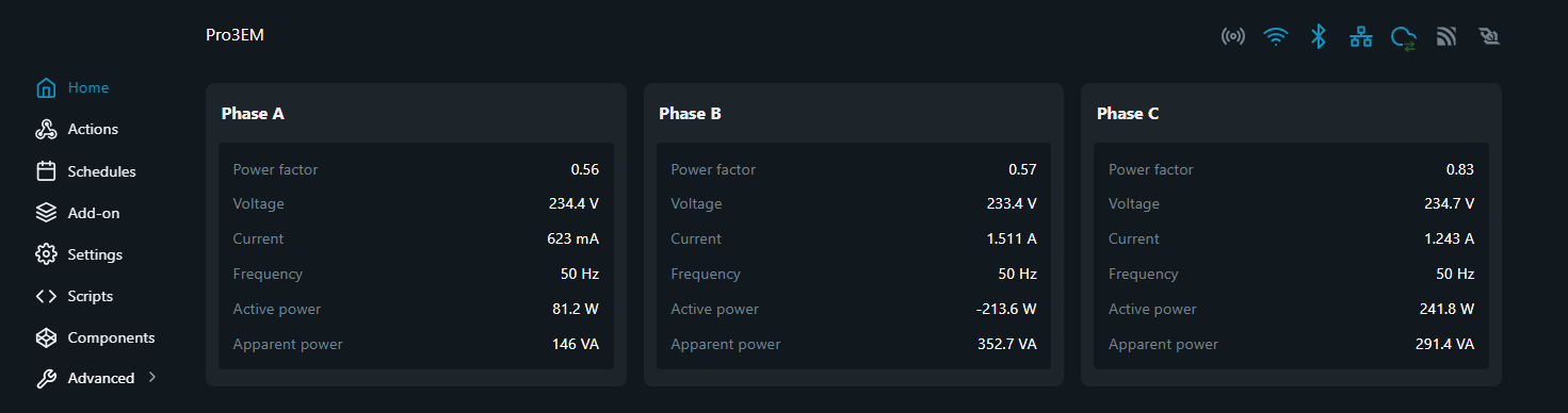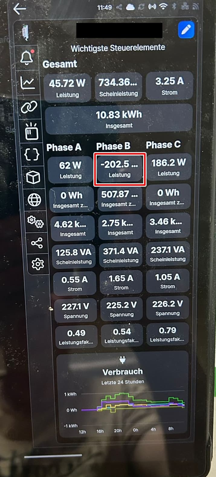 Hi, hast du ein BKW oder Solar WR der einspeist? Dann wäre der minus Wert ganz normal. Wenn du das nicht hast, ist die Klemme falsch herum montiert. Der Shelly kann nur den Strom messen, aber nicht die Richtung. Daher sind diese kleinen Pfeile auf den Klemmen und die müssen halt in die richtige Richtung zeigen (heißt du müsstest Klemme Phase B umdrehen).