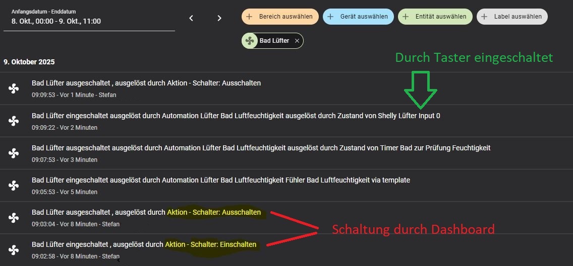 Ich brauche für eine Automation noch einen anderen Trigger. Ich würde gerne feststellen, ob über das Dashboard geschaltet wurde. Siehe Screenshot.