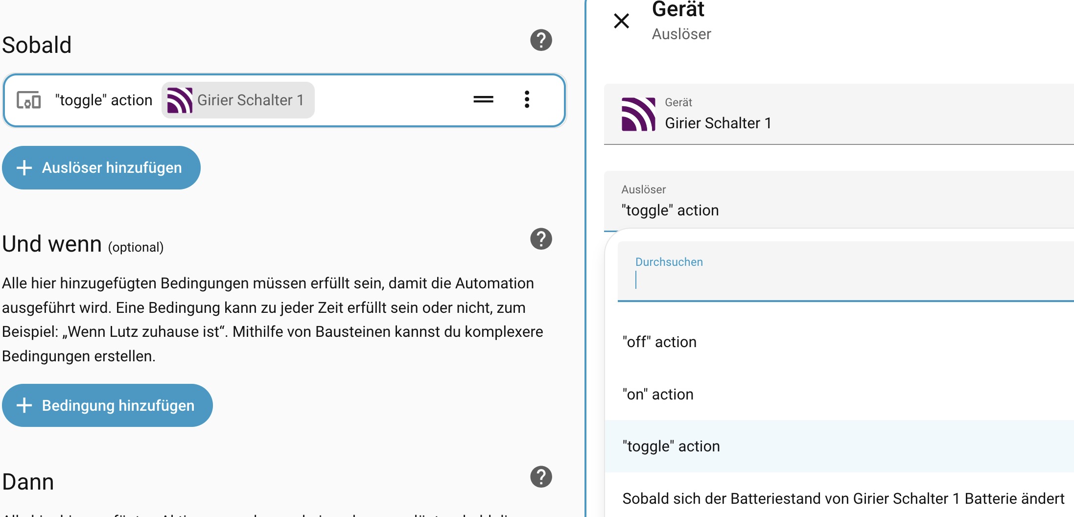 Warum so kompliziert? Der Taster kann als Auslöser in der Automation als Gerät ausgewählt werden.