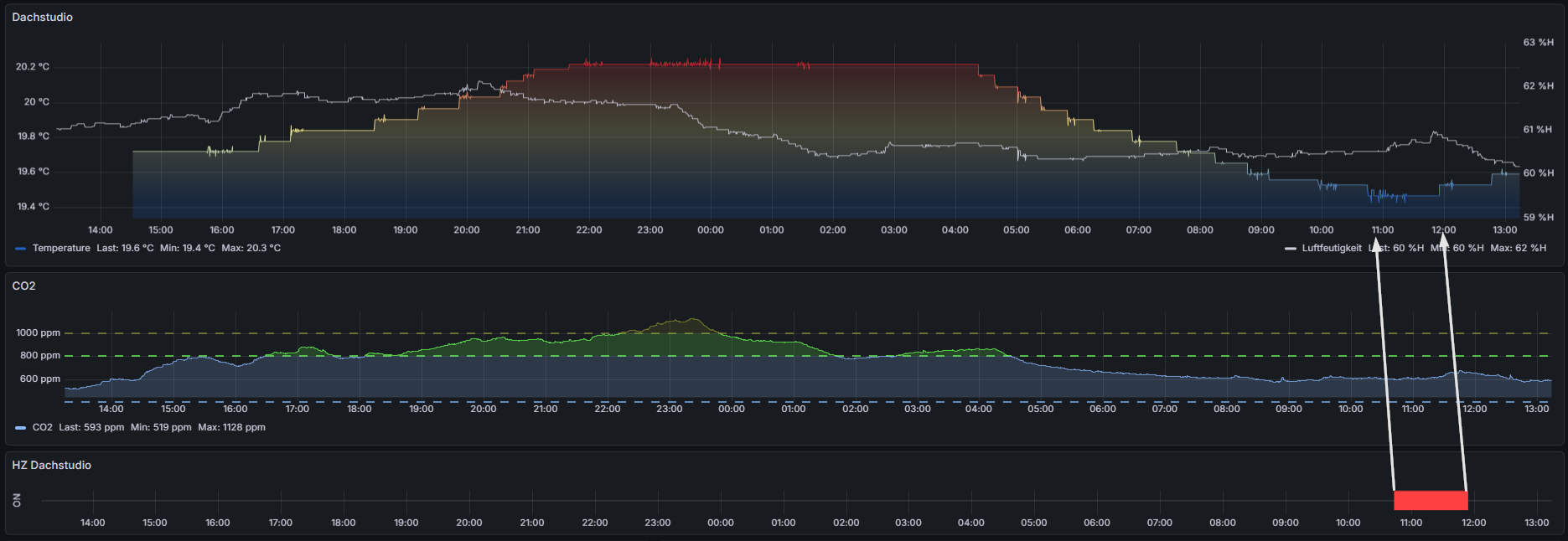 in Grafana ist es natürlich visualisiert mit dem jetzigen Sensor