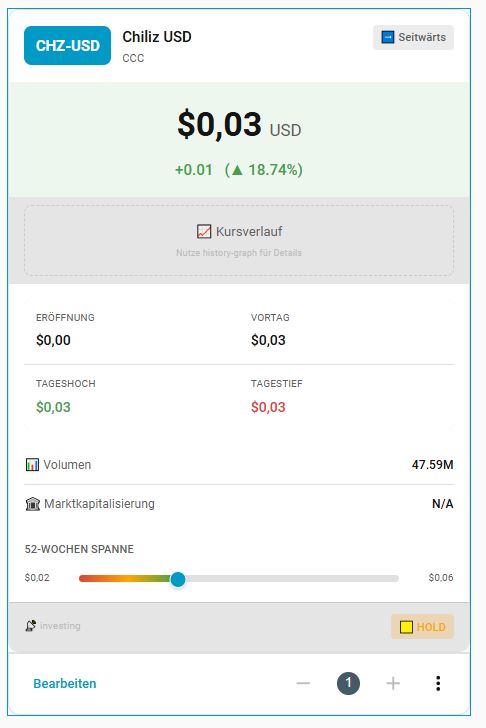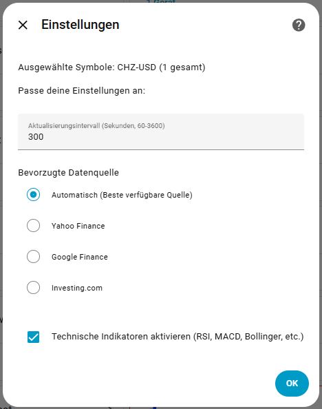 Suche findet jetzt alles – Aktien, ETFs, Indizes über Yahoo und alle Kryptos über CoinGecko (auch neue Coins!). Ihr müsst keine Symbole mehr raten, einfach Namen eingeben.