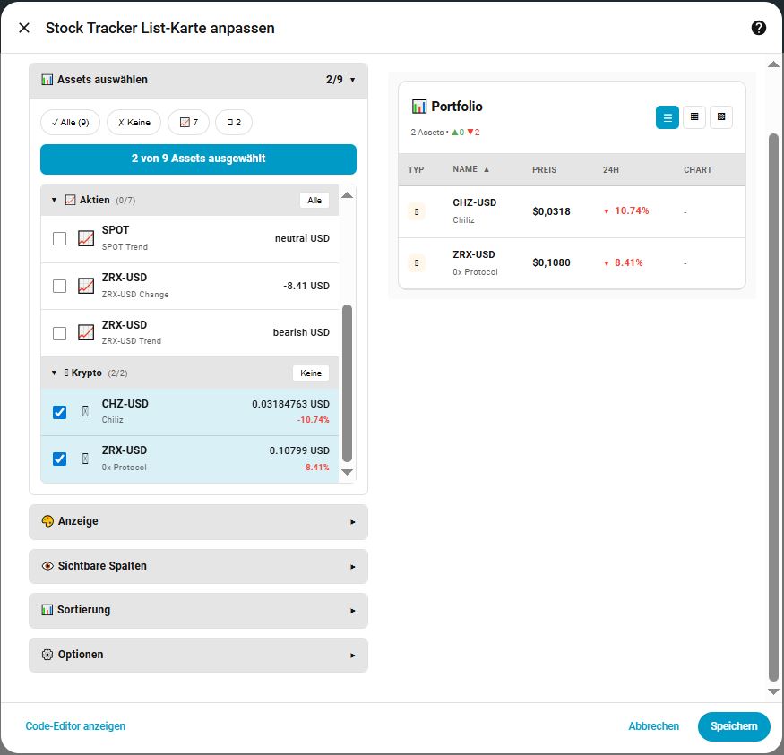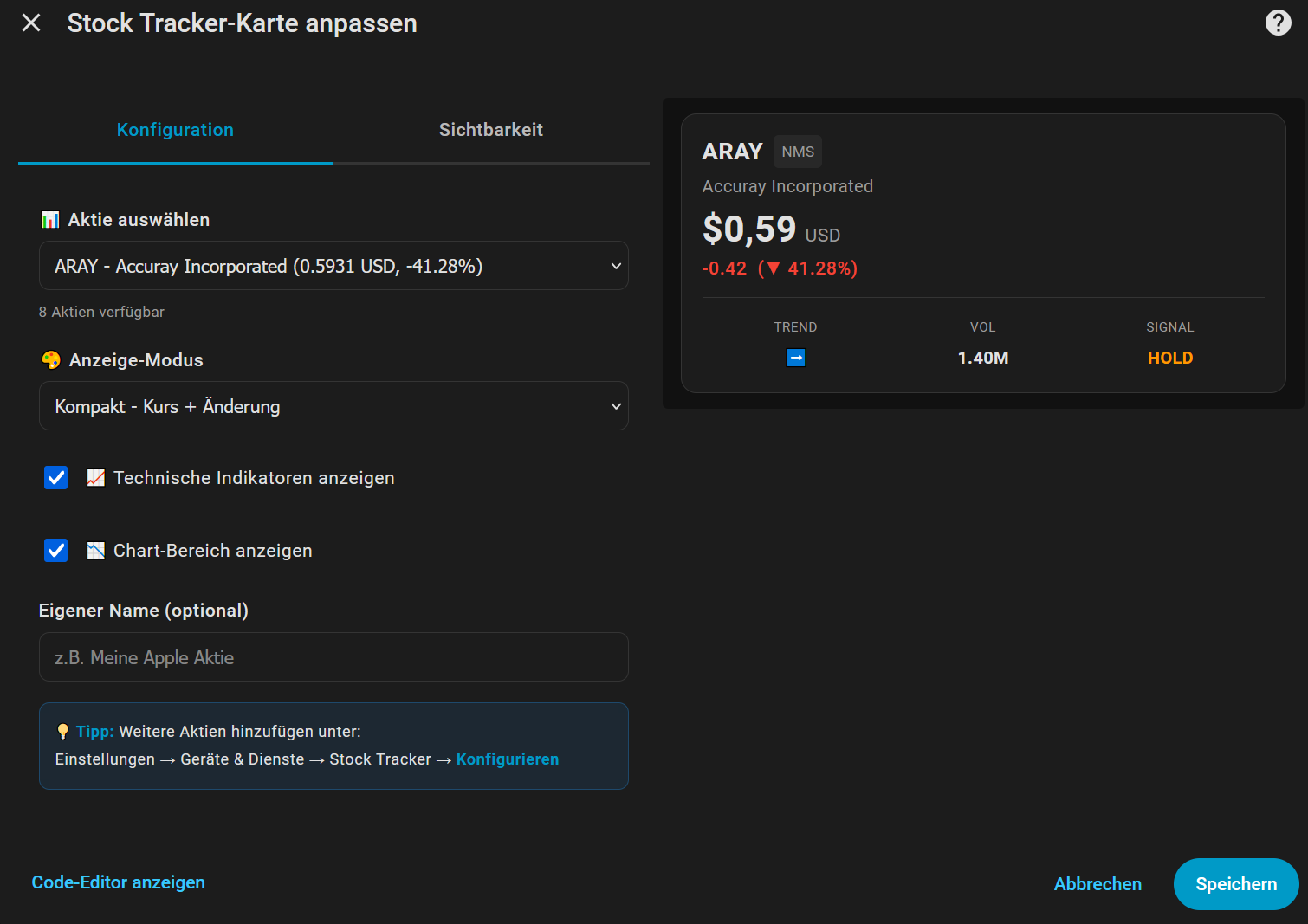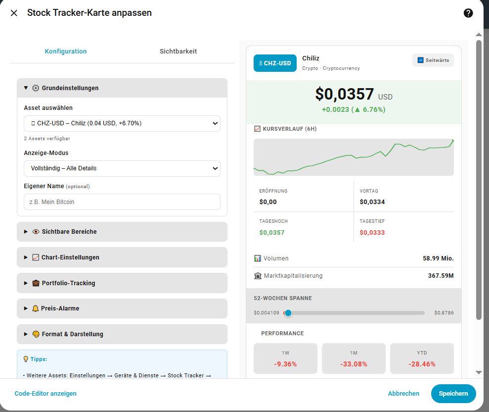 Neue Karte hinzufügen → „Stock Tracker List Card“ wählen