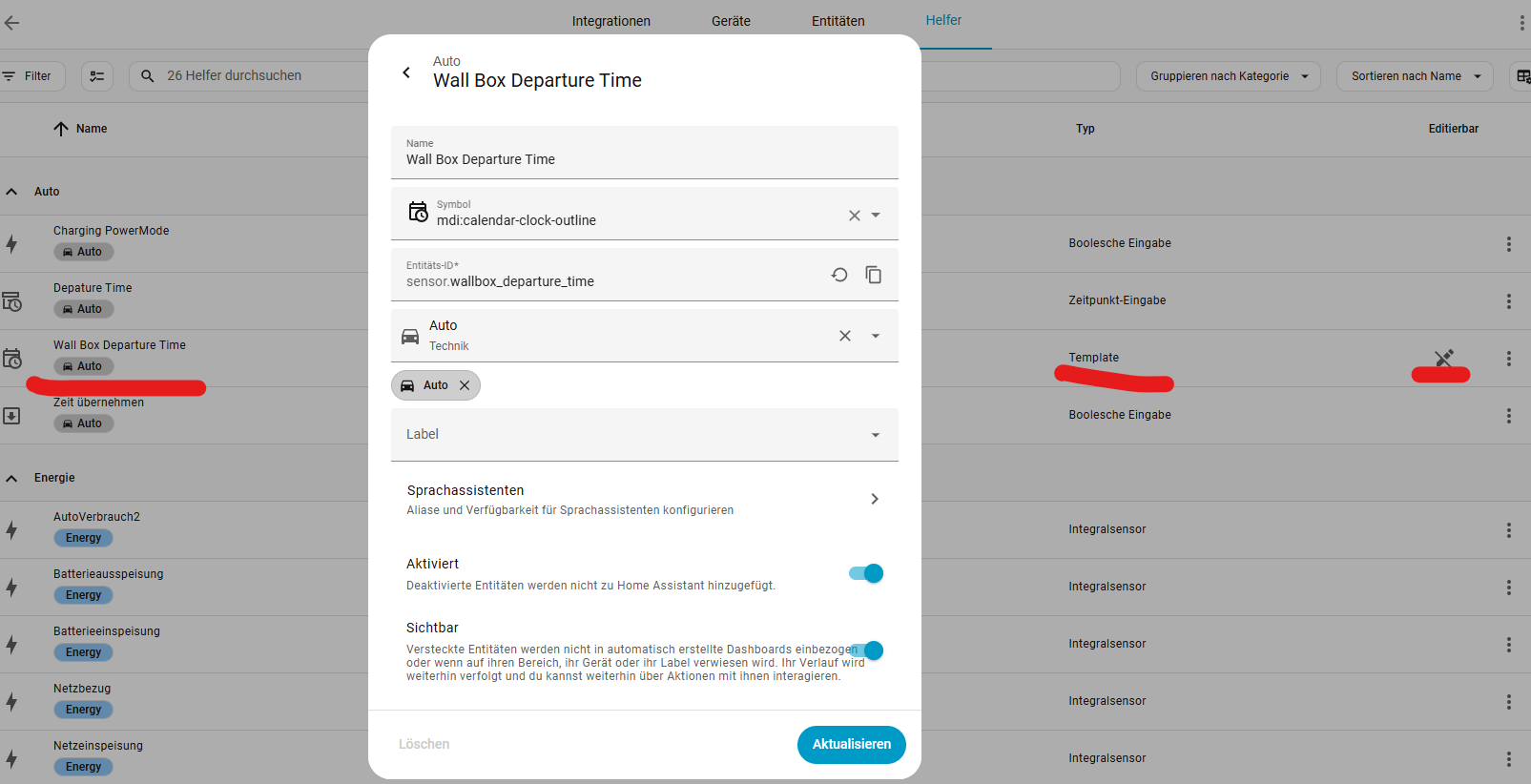 Ich habe in beiden Systemen nach wallbox_departure_time gesucht. Finde einen Eintrag in configuration.yaml, der gleich ist.