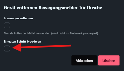 Der Zigbee-Stick versuchte über Wochen vergeblich, dieses Gerät zu erreichen.