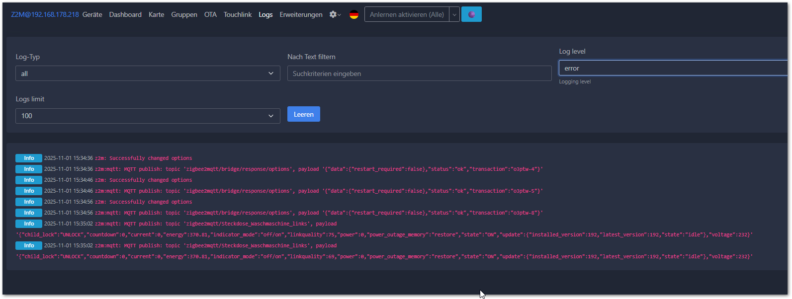 [2025-11-02 15:58:21] info: z2m: Connected to MQTT server