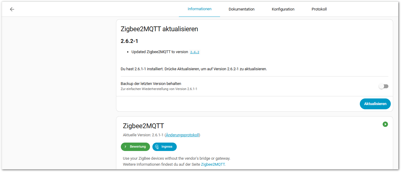 Zigbee2MQTT Web → Einstellungen → “Dashboard” → Kachel “Coordinator” anklicken