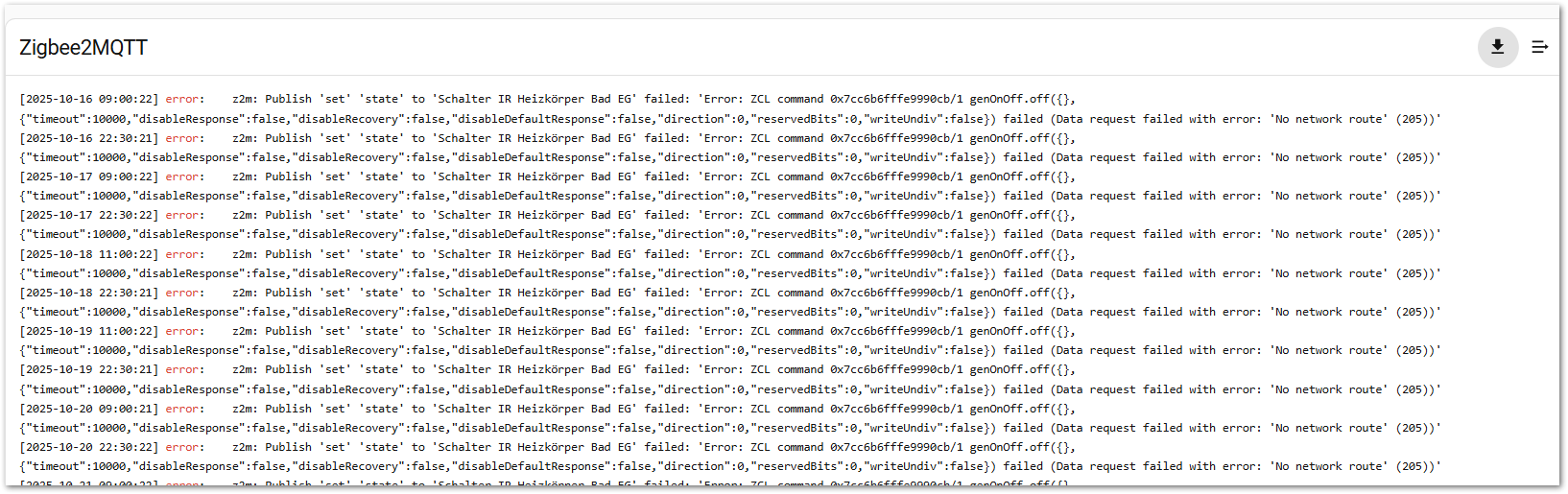 Du hast die Router entfernt, während das Gerät „Heizkörper Bad“ bereits Fehler hatte: