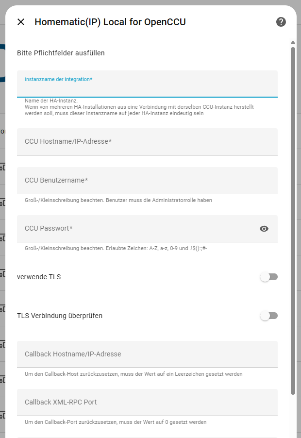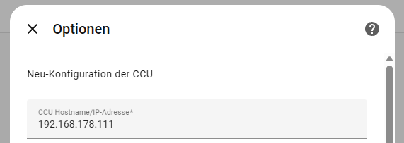 wo in dieser Doku wieder vermerkt ist, dass ich unter anderem die IP von der OpenCCU eingeben soll. Die Einträge habe ich vorgenommen, ohne Erfolg.