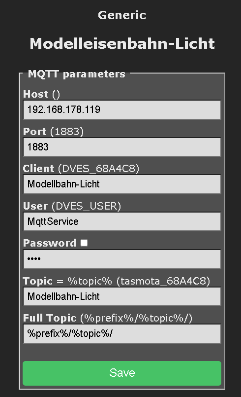 Für HA sind „Topic“ und „FullTopic“ essentiell (MQTT-Kommunikation).