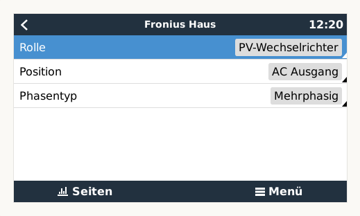 Als was ich der EM24 in VenusOS eingetragen? „PV Zähler“